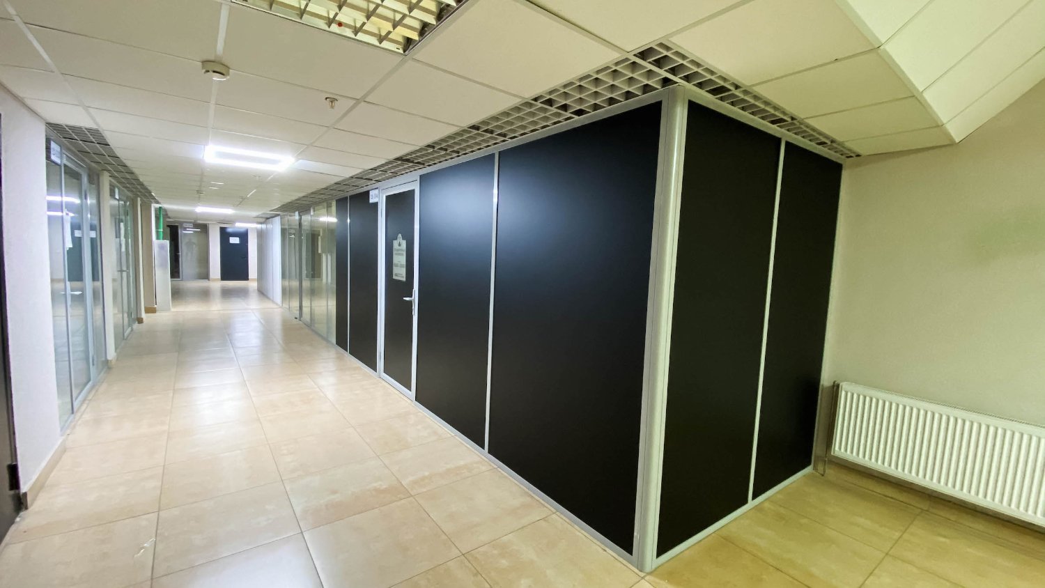Перегородки между помещениями выполнены из керамического кирпича. Стеклопакеты из алюминиевого и ПВХ профиля. Выполнены штукатурные работы.