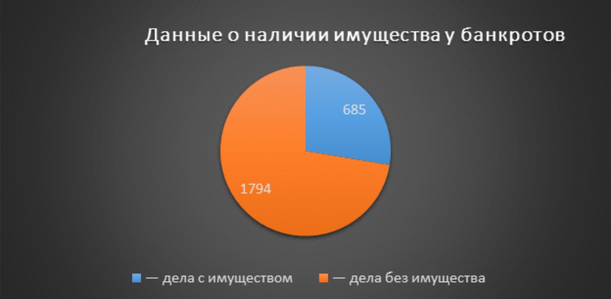 Цифры, безусловно, не радуют, потому как почти треть компаний в банкротстве имеют хоть какое-то имущество. Причем в большинстве случаев такое имущество будет представлено оборудованием, транспортом и недвижимостью.
